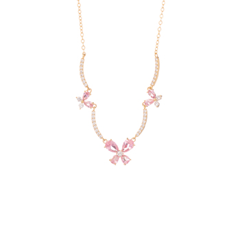 सुरुचिपूर्ण शैली सोना और चांदी की प्लेटेड गुलाबी जिरकॉन तितली पेलेंट हार के लिए लाइट लक्जरी पेलेंट कोलेर्बोन चेन