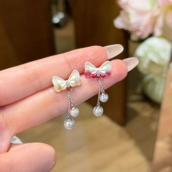 Orecchini da donna eleganti a quattro stagioni con ciondolo in argento con ago di fascia alta con perla a farfalla e Design alla moda facile da abbinare