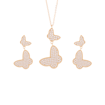Stile alla moda oro placcato argento placcato gioielli brillanti zircone orecchini a farfalla con ciondolo collana per gioielli da donna regalo