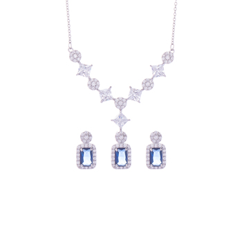 Set di gioielli Vintage placcati in argento elegante rosa chiaro orecchini quadrati con zircone trasparente blu con collana pendente per regalo