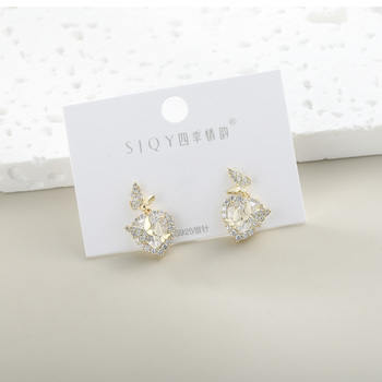 מינימליסטי כסף וזהב בצורת ריבוע פליז בציפוי זהב עם זירקון ורוד עגילים אופנתיים תכשיטים לנשים