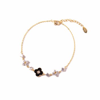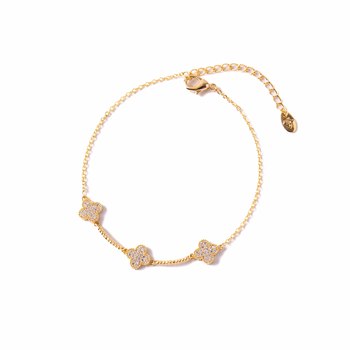 สร้อยข้อมือโซ่ทองเหลืองชุบสีเงินและสีทองพร้อมเพทายลายดอกไม้โคลเวอร์สร้อยข้อมือแบบแฟชั่นสำหรับเป็นของขวัญสำหรับผู้หญิงโรแมนติก